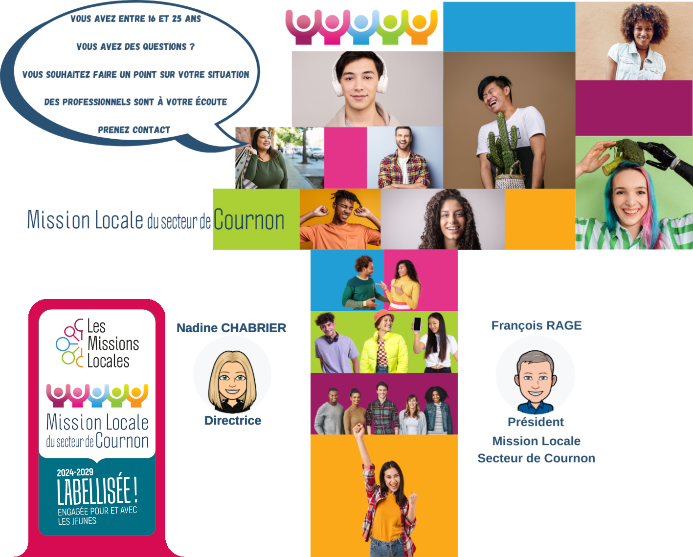 Depuis plus de 40 ans, les Missions Locales œuvrent à accompagner tous les jeunes dans la construction de leurs projets professionnels et à les insérer durablement dans la société. Présentes sur l’ensemble du territoire national, les 440 Missions Locales et les 15 associations régionales représentent l’unique service public de proximité dédié à l’insertion sociale et professionnelle des jeunes de 16 à 25 ans. Chaque année, les Missions Locales accueillent et accompagnent plus d’1,1 million de jeunes vers l’autonomie et l’emploi avec une approche à la fois globale et personnalisée pour chacun d’entre eux, tout au long de leur parcours : orientation, formation, emploi, logement, santé, mobilité, citoyenneté, sports, loisirs, culture etc.